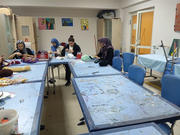 birliğiyle başlatılan el sanatları kursuna 45 kişi katılım sağladı. El sanatları kursu hem el