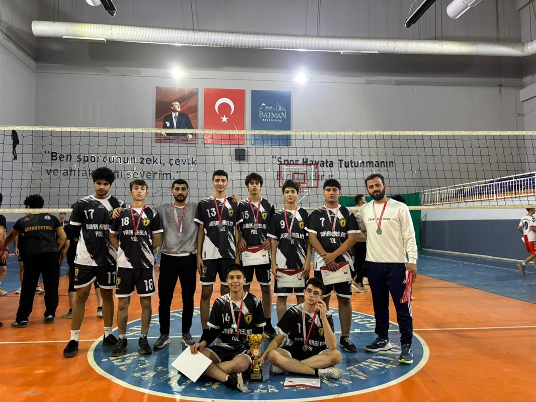 Batman Gençlik ve Spor İl Müdürlüğü’nün 2025-2026 okul sporları faaliyet programı kapsamında düzenlenen Genç Erkekler (Liseler Arası) Voleybol İl Şampiyonası sona erdi. Büyük heyecana sahne olan turnuvada Ziya Gökalp Anadolu Lisesi, tüm rakiplerini geride bırakarak il şampiyonu oldu. 7 ayrı grupta toplam 25 lise takımının mücadele ettiği şampiyonada yaklaşık 250 sporcu ter döktü. Sporun centilmenlik ve rekabet ruhu içinde geçtiği müsabakalar, izleyenlere keyifli anlar yaşattı. Turnuva sonunda dereceye giren okullara kupa, madalya ve katılım belgeleri; okul müdürleri, beden eğitimi öğretmenleri ve spor uzmanları tarafından takdim edildi. Şampiyonluğu elde eden Ziya Gökalp Anadolu Lisesi, bu başarısıyla Batman’ı ve okullarını grup müsabakalarında temsil etme hakkı kazandı. Okul Sporları Şube Müdürü Ömer Polat, organizasyona katılan tüm takımları ve sporcuları tebrik ederken, il şampiyonu Ziya Gökalp Anadolu Lisesi’ne grup müsabakalarında başarılar diledi.
