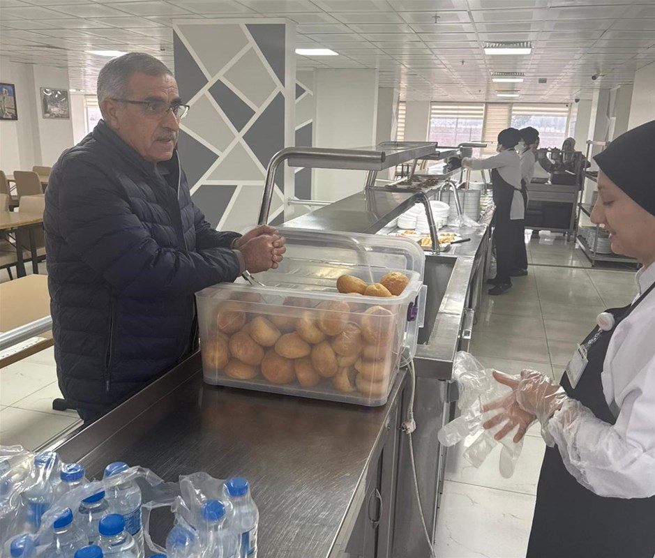 Denetim sırasında kantin ve yemekhane çalışanlarıyla bir araya gelen Özperk,