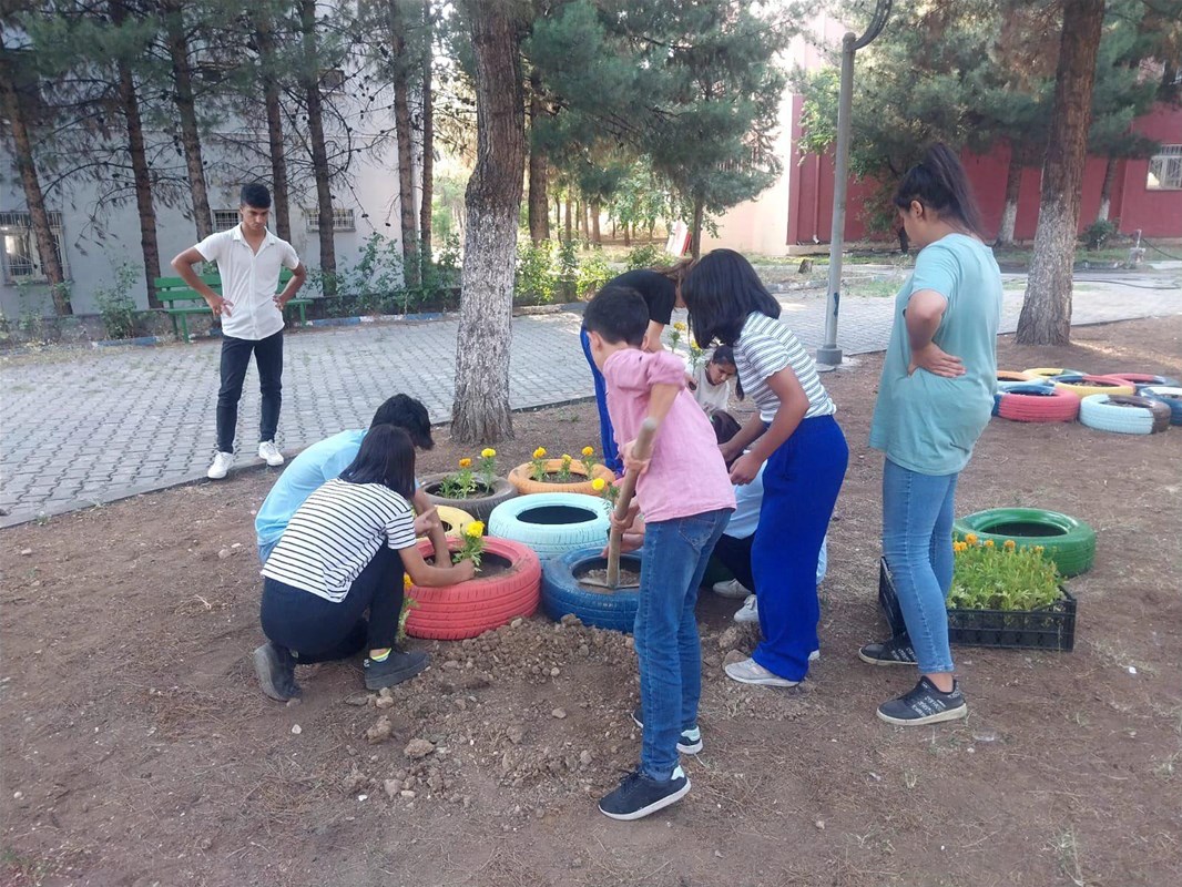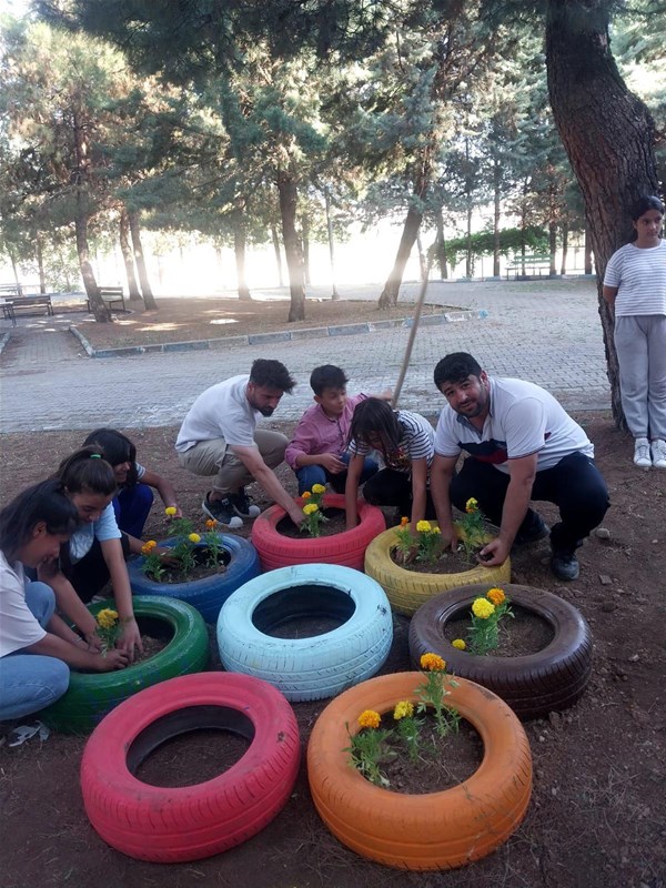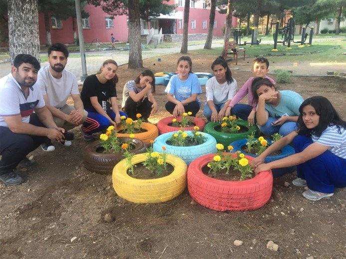 geri dönüşüme kazandırarak, çiçek saksısı yaptı. Gençlik liderleri, gönüllü