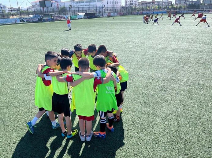 farklı seans ve günlere ayırdıkları gruplarda yüzlerce çocuğun futbol eğitimi