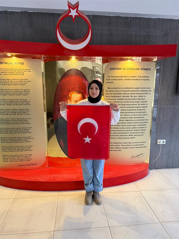 değerlerine sahip çıkan bireyler olarak yetişmesinden duyulan memnuniyet dile getirildi. Etkinlik, öğrencilerin bayrak önünde hatıra fotoğrafı
