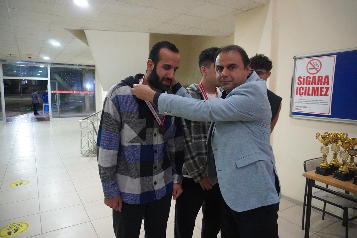 öğrencilere madalyalarını ve kupalarını, Yurt Hizmetleri Müdürü Nurettin